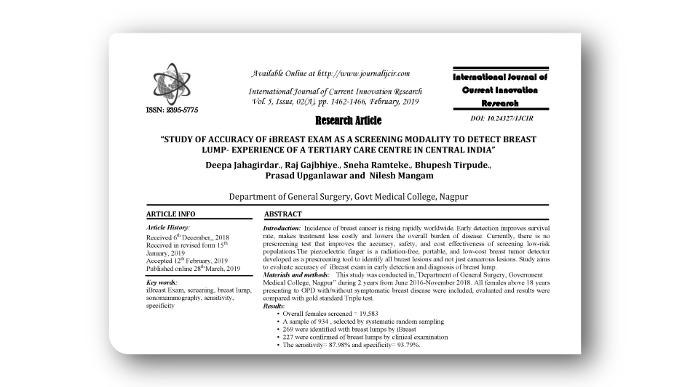 Se inscribieron 3.247 mujeres en un estudio independiente de ámbito comunitario realizado por un importante centro de tratamiento del cáncer en Kerala (India) para evaluar la viabilidad, utilidad y aceptación de iBreastExam en mujeres sanas asintomáticas.