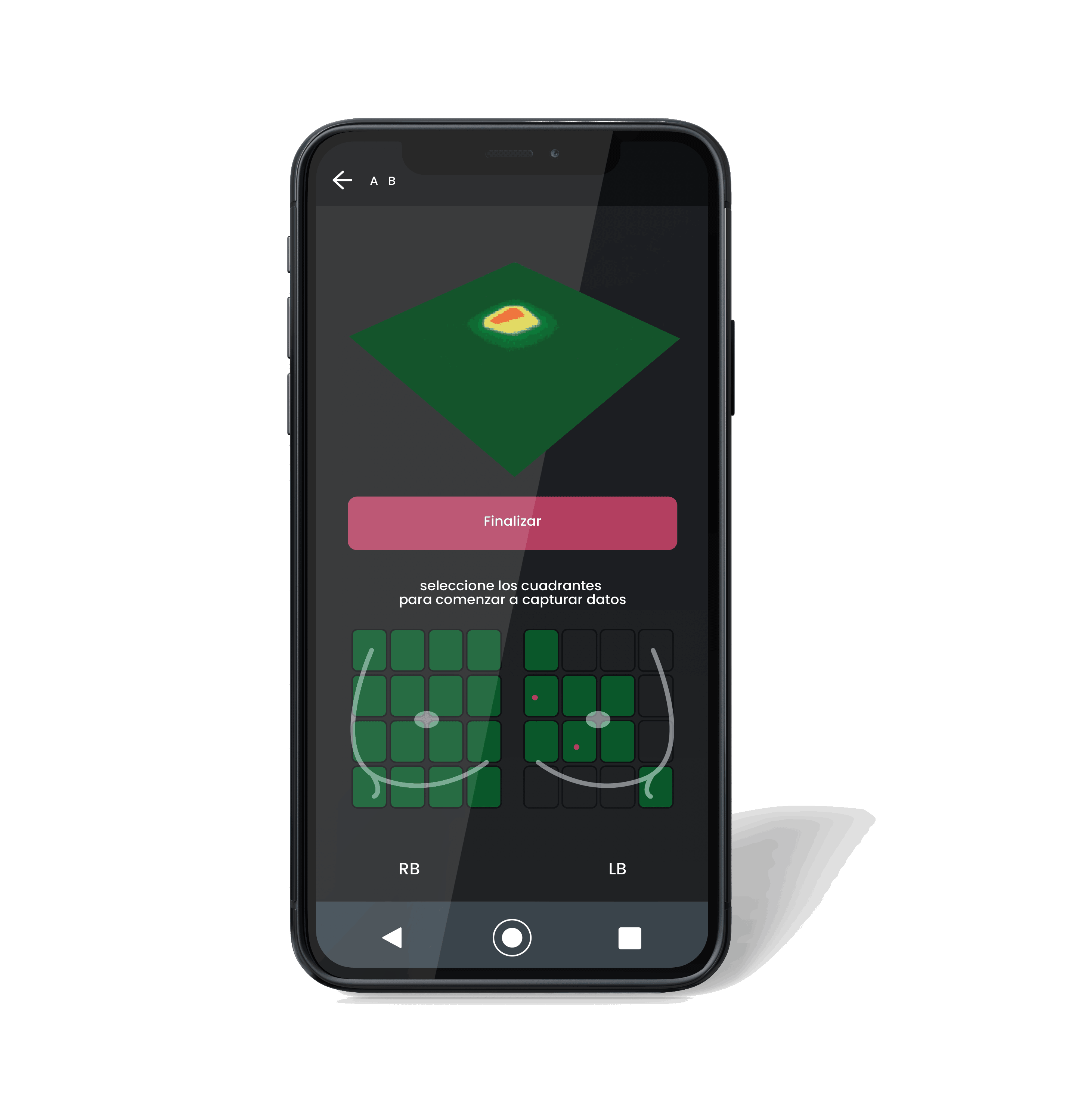 iBreastExam solo ayuda a localizar bultos y lesiones en el tejido mamario. No caracteriza los hallazgos.